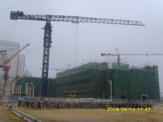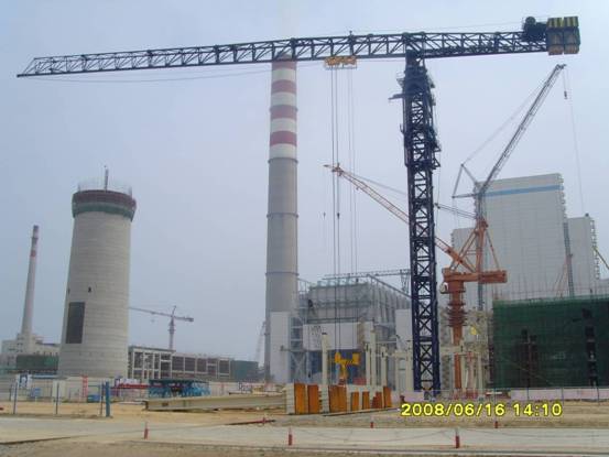 由东北电业管理局一公司承建100万KW辽宁绥中电厂,采用中昇建机ZSC2800(ZSC70360)水平塔式起重机,最大吊重19.5m处吊140t,已于08/6/14立塔开始投入工程吊装,此一水平塔式起重机为国内最大吨位之起重机,此产品具有吊装速度快、吊装覆盖面积广、抗风能力强、塔身刚度强、附着高度大、拆装快速…..等优点,产品优异性深获施工单位好评,此产品亦为我公司又一成功之超大型起重设备。