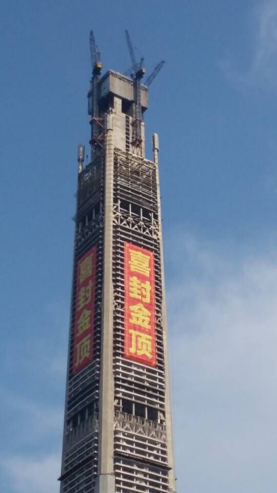 2015年9月8日上午,随着最后一车12方混凝土泵送出管,2015年9月8日上午,随着最后一车12方混凝土泵送出管,由中昇建机参建的天津117大厦主塔楼核心筒结构高度达到596.5米,成为世界结构第二高楼,中国结构第一高楼(世界结构第一高楼为哈利法塔)。117大厦建筑体量约为84.7万平方米。
