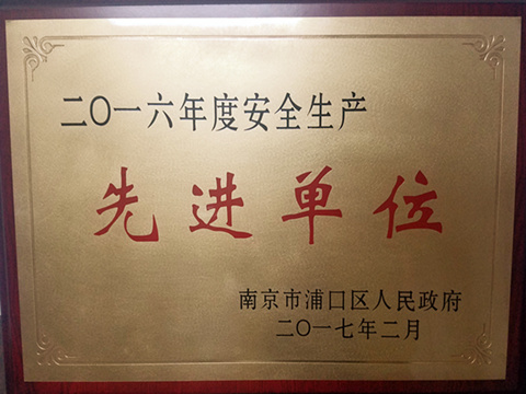 我公司因坚决贯彻落实上级部署,扎实开展安全生产大检查,圆满完成了上级下达的各项控制指标与考核任务,荣获“浦口区2016年度安全生产先进单位”。