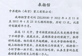 我公司在中建八局金陵饭店扩建工程项目结束之际,以认真负责的态度、高水平的施工质量,圆满完成塔机拆除工作,荣获项目方的高度表扬。 2012-06-26 |