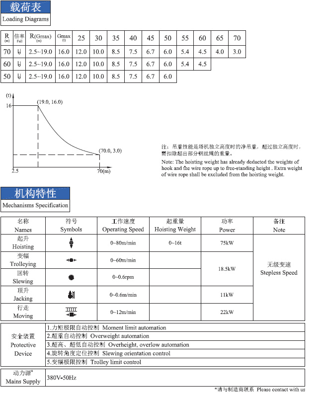 臂长: 70 M